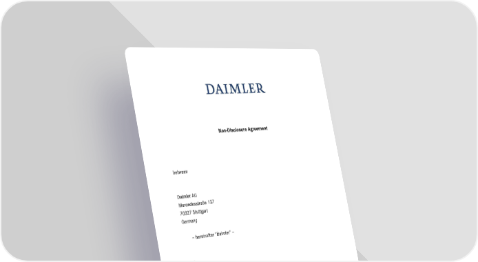 Non-Disclosure Agreement between Daimler AG Mercedesstraße 137 70327 Stuttgart Germany – hereinafter “Daimler” – and [•] [•] [•] – hereinafter “Partner“ – - Daimler and Partner hereinafter also referred to as “Party”/”Parties” – Initials: ________/_________